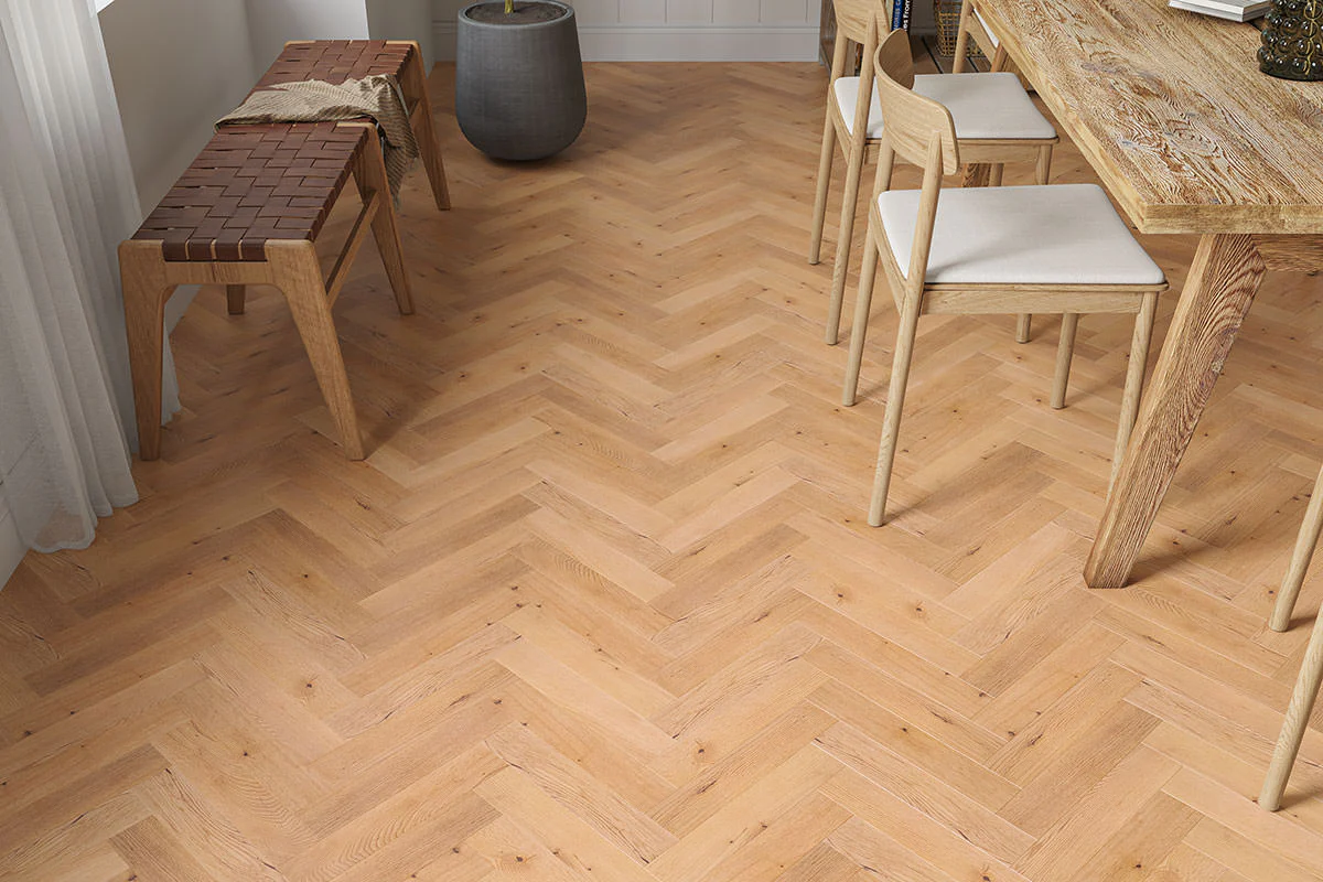 A perfect choice for bedrooms, conservatories, and utility rooms, this floor combines classic charm with modern durability. Its stunning herringbone pattern makes it a standout feature in both contemporary and traditional interiors, bringing warmth and elegance to any space.