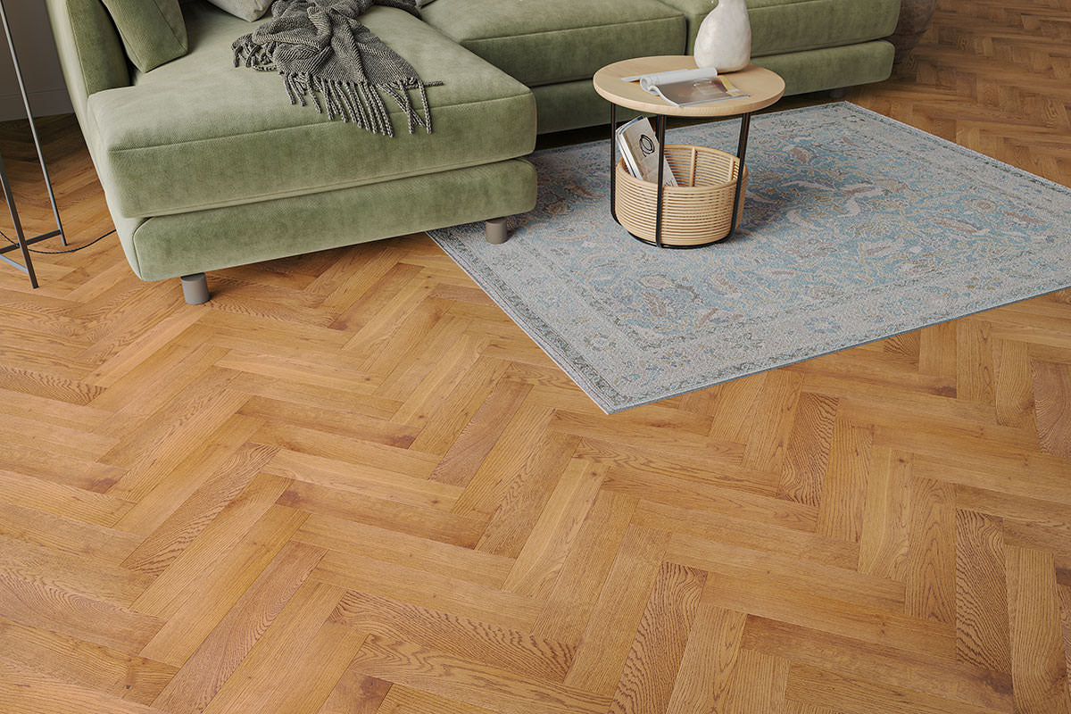 Galleria Professional Solid European Rustic Oak Herringbone Flooring 18mm x 70mm Smoked UV Oiled